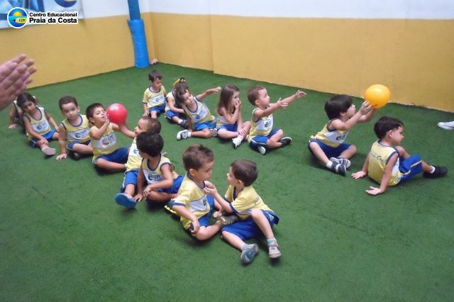 Data: 12/03/2015 Psicomotricidade: atividade utilizando bola e bambolê, visando desenvolver a coordenação motora grossa, o trabalho em equipe e a socialização entre as crianças.